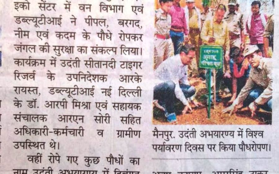 The World Environment Day was celebrated in and around USTR by planting evergreen trees around landmark locations on the 5th of June, 2019. WTI procured 50 trees, each of them 10ft in height, free of cost and transported them to USTR. The trees included Sacred Fig (Ficus religiosa), Neem (Azadirachta indica), Kadam (Neolamarckia cadamba) and Banyan (Ficus benghalensis). The trees were planted in the core area of tiger reserve on the bund of pond/tank, streams, bank of river/nullah and rough trail crossings to deliver the maximum impact as and when they grow up.