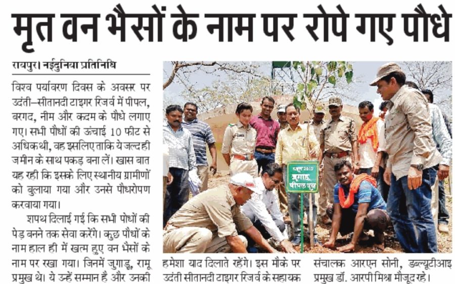 The trees will be looked after by villagers and forest department staff hereon. Trees were labelled viz. Jugadu Vat & Pipal Vriksh, Shyamu Vat & Pipal Vriksh, Kalia Vat & Pipal Vriksh, etc. have been put beside each tree after the prominent wild buffaloes we had in USTR. We lost all three buffaloes in the past, but with this drive, their names will be remembered for a long time to come.