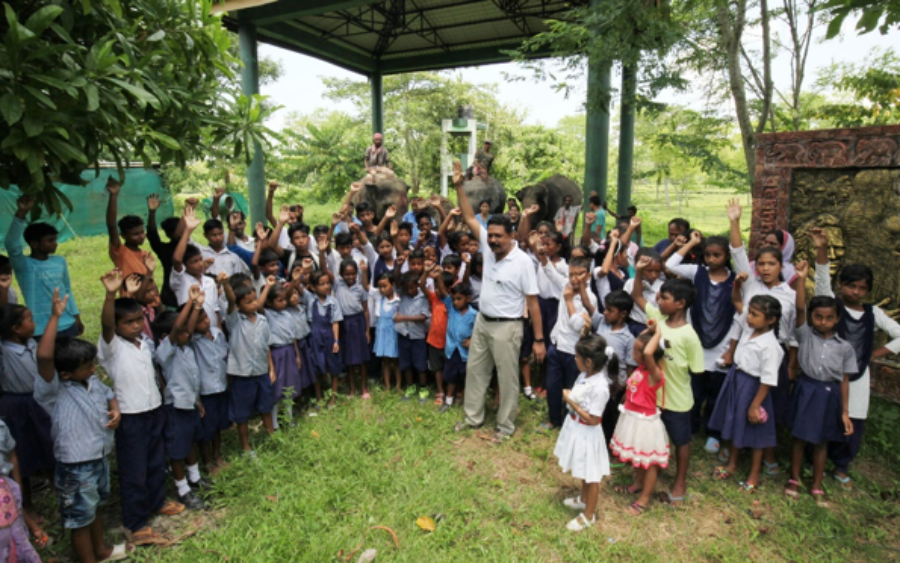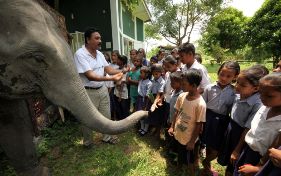 Dr Rathin Barman, Joint Director, WTI celebrating elephants with school children on World Elephant Day, August 12 at Mark Shand Asian Elephant Learning Centre of Kaziranga Discovery Park.